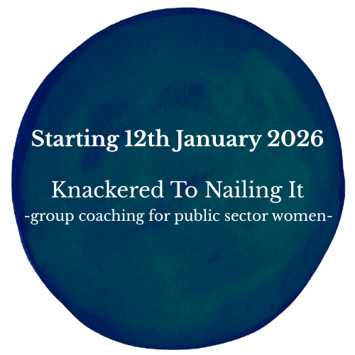 The next round of the Knackered To Nailing It - Group coaching for public sector women begins again on January 12th 2026.